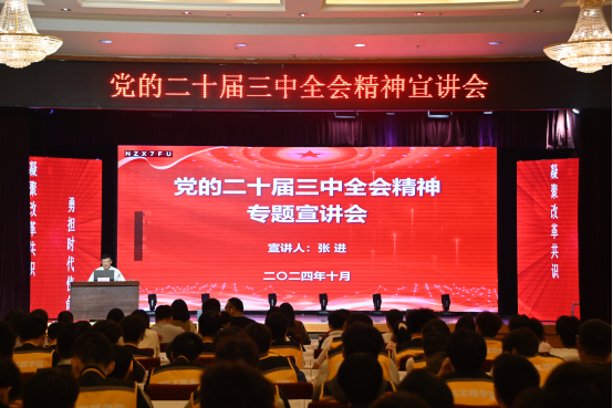 张进校长从党的二十届三中全会的重要意义、深入学习领会习近平总书记在党的二十届三中全会上的重要讲话精神、全面准确理解《中共中央关于进一步全面深化改革、推进中国式现代化的决定》提出的进一步全面深化改革重大举措。对党的二十届三中全会精神进行了全面、深入、系统的阐释解读。全面学习贯彻习近平新时代中国特色社会主义思想特别是习近平总书记关于全面深化改革的一系列新思想、新观点、新论断。