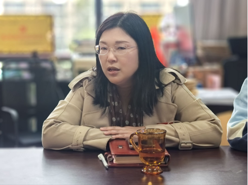 24 建设工程管理一班辅导员汪国菊汇报该班学生专业知识储备情况,提到学生已掌握核心理论知识,具备一定学习能力,为后续开展实训打下基础。