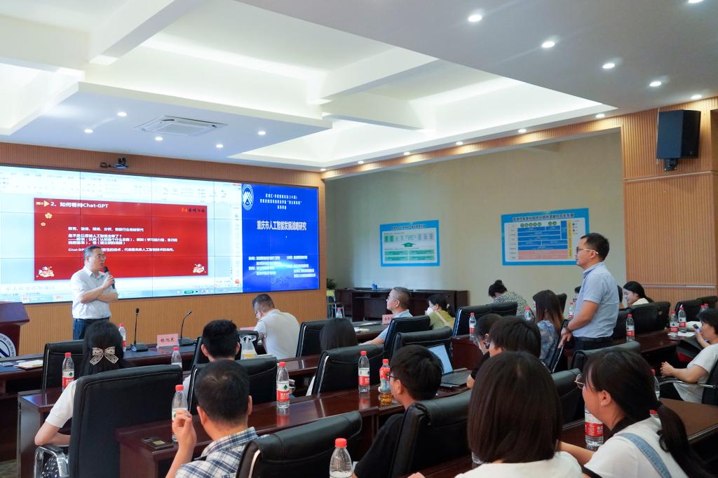 2023年5月17日,菁英汇·沙磁创新论坛(34期)暨beat365官方网站“博士讲科研”系列讲座活动(第九场)在beat365大数据中心顺利举行。本次活动由数字工程学院院长唐国坪主持,邀请了重庆市科技局专家库大数据专家、重庆市科学技术研究院研究员、重庆科技发展战略研究院副总经理林旭东博士就“重庆人工智能发展战略研究与ChatGPT发展”做精彩报告,参加讲座的有学校科研处、智能制造学院、大数据学院等二级学院/部门的骨干教师及学生代表。