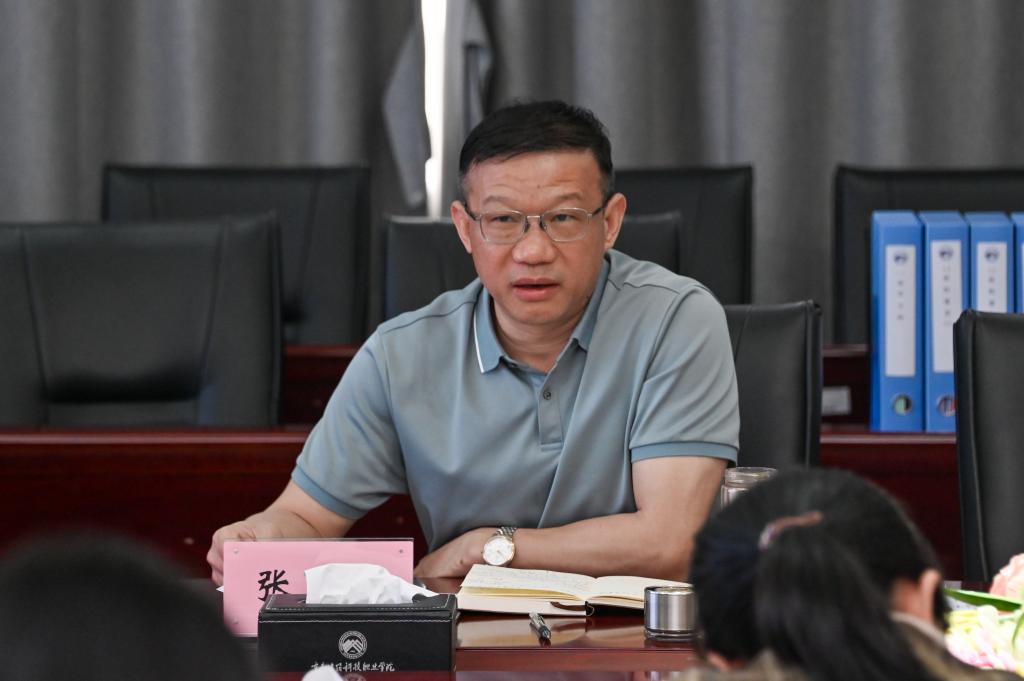 最后,由张进校长对本次会议进行总结。他表示,学校各学院和部门要进一步提高站位、统一思想,要充分认清学校科研工作的重要性,要让所有教师认识到教学科研工作相辅相成,做到教学科研两手抓。同时,张进校长对学校今后科研管理工作提出相关要求:一是以职称绩效改革为契机,做好科研目标管理考核与过程管理,改革完善激励机制,确保科研高效落地;二是各二级学院要提升科研管理水平,用好改革激励机制,推动科研工作快速开展;三是加强与其他企业、高校合作,进一步整合资源,拓展渠道,推动科研成果转化应用,提升科研项目质量,努力在科研领域取得更多突破;四是强化规范管理,严守科研诚信与学术道德,并高度重视意识形态工作,确保科研工作的正确导向。