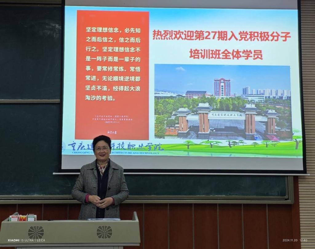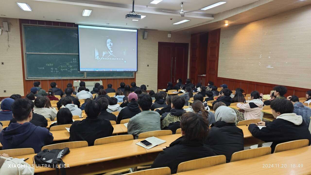 2024年11月20日晚,80名入党积极分子在笃学楼2105教室济济一堂,开启了又一堂培训课程。马院陈晓辉老师用“聆听有我”的互动环节,在深情而优美的《红梅赞》和《绣红旗》歌声中,《弘扬红岩精神,凝聚奋进力量》红课开讲啦。陈晓辉老师从什么是红岩精神、红岩精神的实质和筑牢信仰之基三个方面为切入点,深刻阐释了红岩精神的精髓。用案例和视频等生动直观的形式,帮助每一位入党积极分子了解红岩精神的伟大力量之所在,并用实际行动弘扬红岩精神,传承红色基因。在“诵读有我”的互动环节中,大家动情地朗诵革命烈士陈然的《我的自白书》诗篇。最后,入党积极分子全体起立举起右拳,在“我想对党说”的环节中,向党表达真挚情感和坚定决心。在他们宏亮整齐的“不忘初心,牢记使命。锚定目标,勇毅前行。跟党奋斗,敢当尖兵。砥砺青春,踔厉奋发。请党放心,强国有我”声音中结束了培训课程。