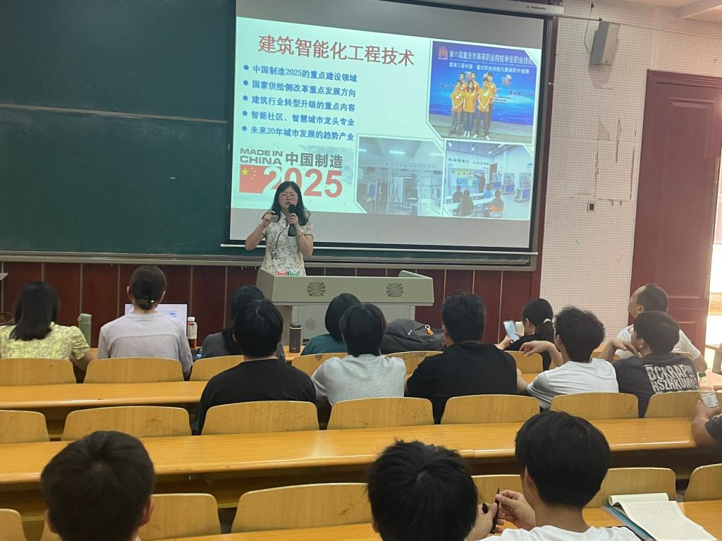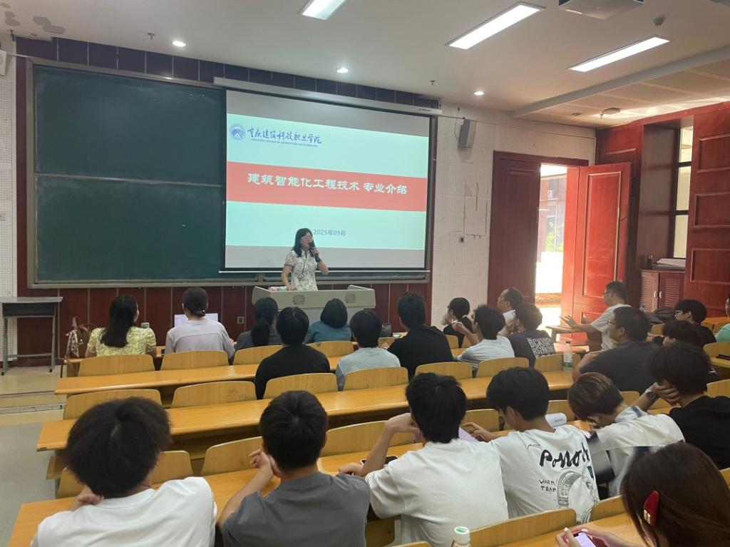 2025年9月3日下午,智能制造学院为建筑智能化工程技术专业的新生们精心举办了一场专业介绍会。会议由智能控制教研室主任王雪琴主持、建筑智能化专业负责人张从聿老师主讲,智能控制教研室全体教师、辅导员以及2025级建筑智能化工程技术专业新生共同参与。