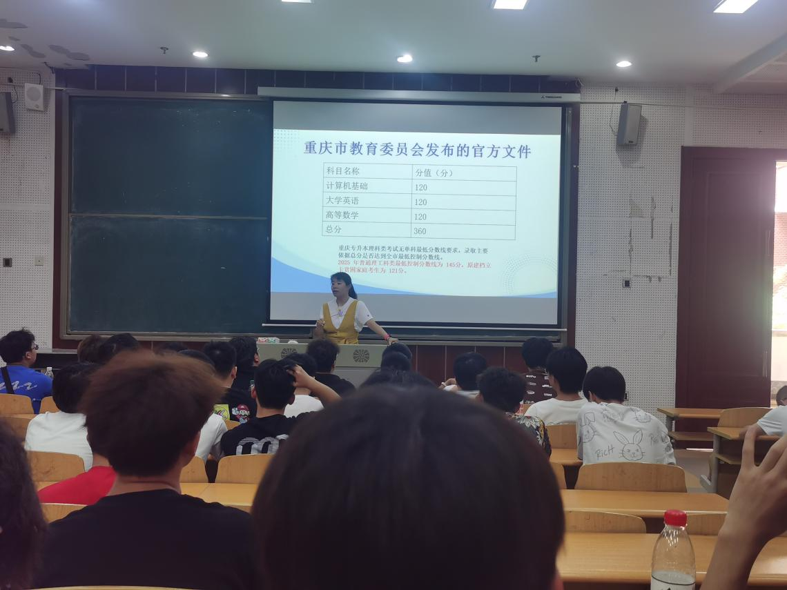 会上,韩洋祺老师首先对新生表示欢迎与祝贺,并介绍了专业的核心优势。该专业师资力量雄厚,教师团队成员多持有副高职称或硕士学位,毕业于知名高校且拥有丰富的教学经验;课程围绕智能网联汽车核心技术设置,涵盖智能汽车构造、车载网络技术及通信技术、自动辅助驾驶系统、智能汽车整车控制技术、智能汽车线控底盘系统等关键领域。在实践与就业保障方面,学校深化产教融合,与赛力斯、五菱厂、长安等企业共建实习基地,开展人才培养与技术研发合作,助力学生积累实践经验;鼓励学生参与学科竞赛,过往学生屡获佳绩,专业技能与综合素质表现突出;支持学生考取电工证、CAD、智能网联汽车操作等技能证书,增强就业竞争力。