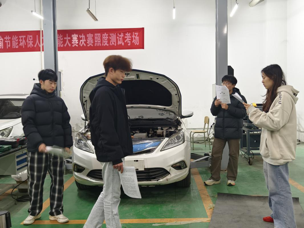 在学院新能源汽车整车实训室,备赛学子以市场需求为导向,围绕产品推介、方案策划等核心技能开展沉浸式训练,用专业素养与实战能力备战市级赛场的同台竞技。