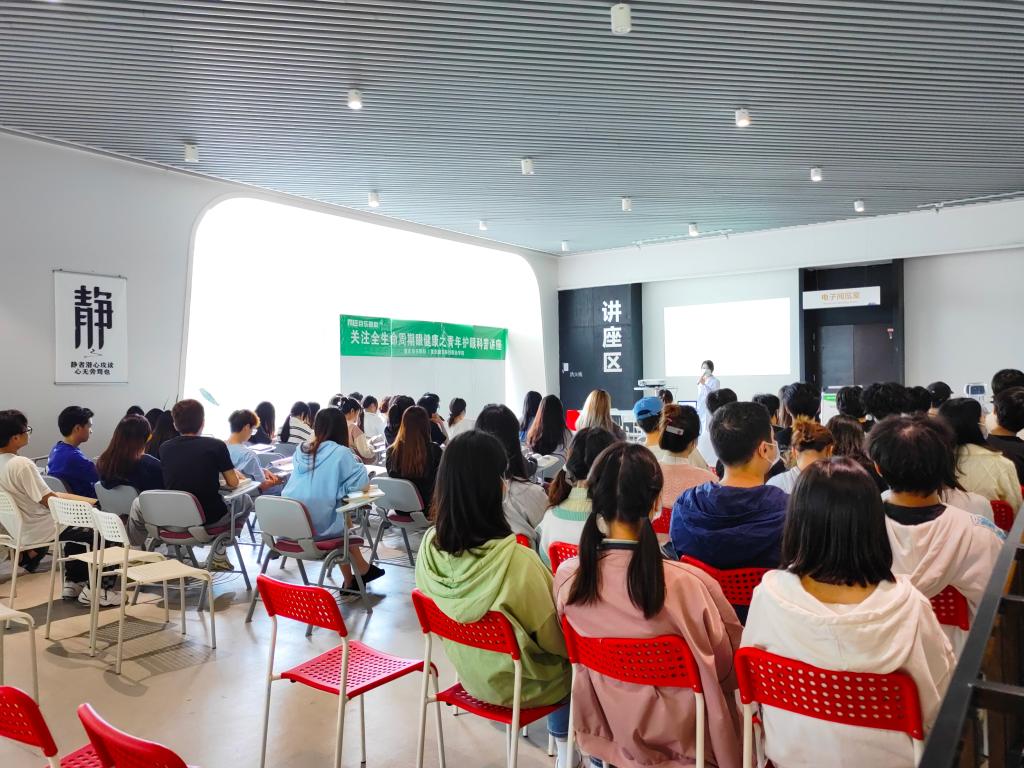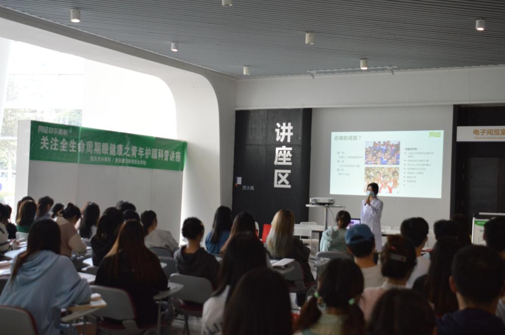 本次活动于9月28日下午在图书馆的讲座区举办。图书馆精心组织,细致安排,组织了近百位学生参加此次活动。活动期间由目乐眼科的工作人员,就用眼的注意事项、用眼的盲区、用眼的方法进行了讲解。期间学生就用眼的各种疑问进行了提问,工作人员细心进行了解答。