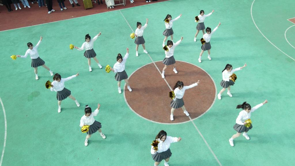 随着裁判员一声哨响,李校长亲自为比赛队伍抛起第一颗球,拉开比赛帷幕。球员们在赛场上奋力拼搏,比赛间隙啦啦队的同学也全力助阵,观众同学们齐心呐喊助威,赛场氛围异常热烈。