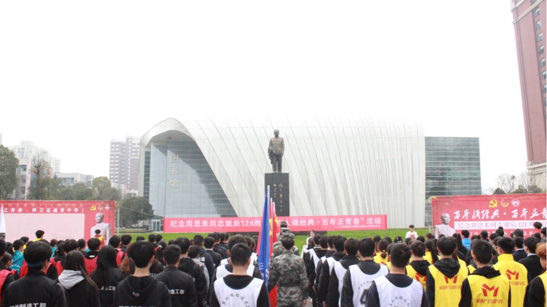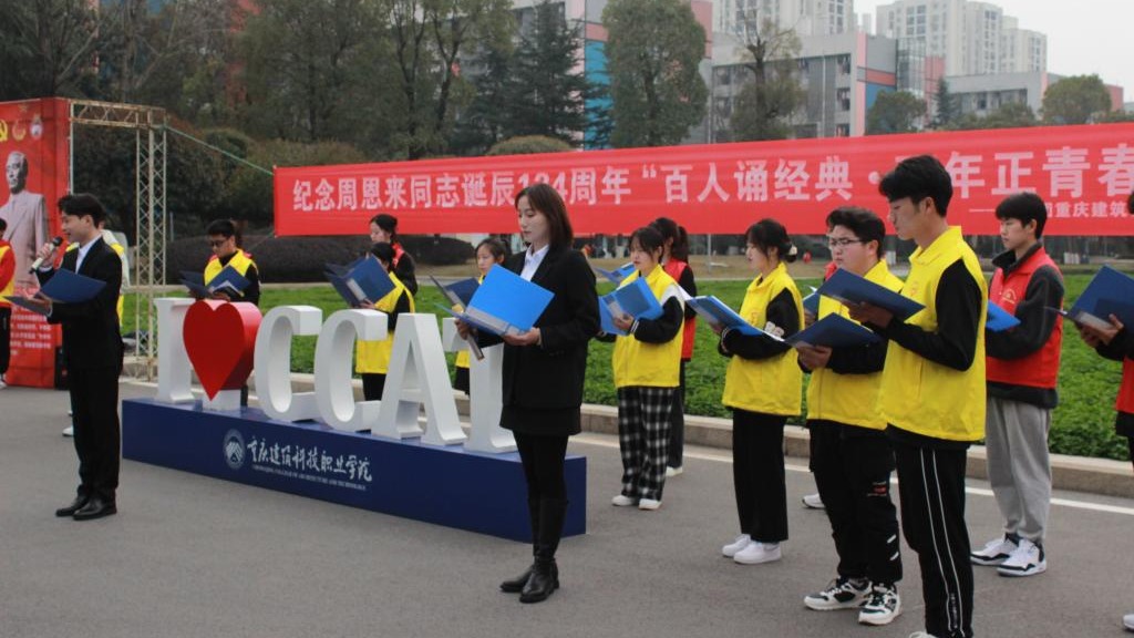 2022年3月4日,在周恩来总理诞辰124周年之际,重庆建筑科技职业学院师生齐聚于学校恩来广场,隆重举行“百人诵经典·百年正青春”——纪念周恩来同志诞辰124周年活动,深切缅怀周总理的革命精神,追思周总理的崇高风范。本次活动由校团委主办,学校党委副书记、副校长李果出席活动,学工部部长冉小平、各二级学院党总支(支部)书记及团总支书记们均到场参与,同时,参加本次活动的还有各学院学生代表以及校青年志愿者协会、党员服务站学生代表共150余名同学。