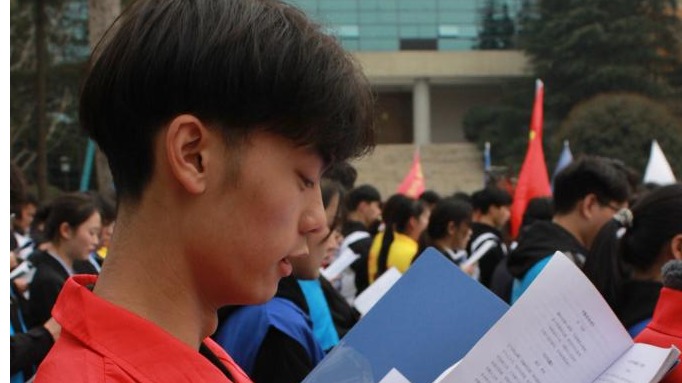 中午12时,铿锵有力的诵读声在恩来广场响起:“七十年弹指一挥间,新时代的中国早已山河无恙,国富兵强,一派繁荣锦绣。如今周恩来总理离开我们已经46年,而他为中华之崛起而读书的远大抱负,为革命和人民无私奉献一生的精神,始终留存在我们心中。”由来自各个学院组成的百人学生诵读团,在恩来雕像前深情齐颂,他们用铿锵的誓言、用深深的鞠躬,向周总理致以崇高的敬意。