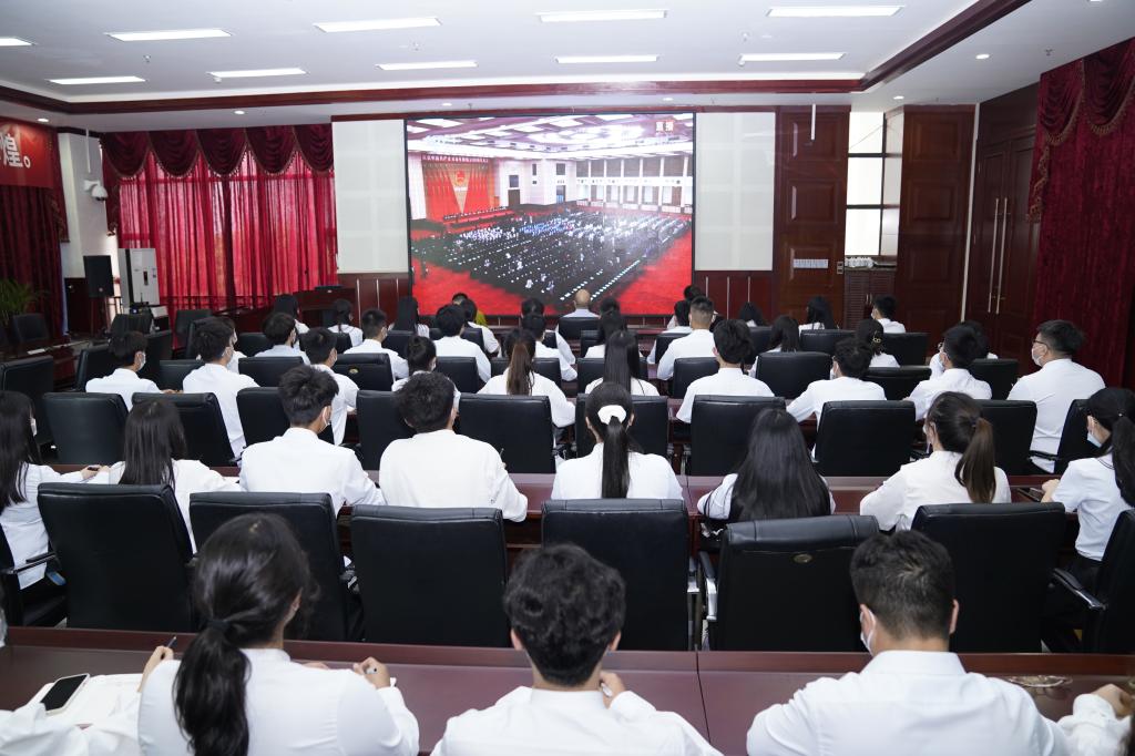2022年5月10日上午,共青团beat365官方网站委员会在笃学楼4305收看庆祝中国共产主义青年团成立100周年大会。学校党委书记文厚润,党委副书记、学校副校长李果,与校团委全体成员、二级学院团总支书记、以及beat365青年师生代表们一起,共同集中观看大会。