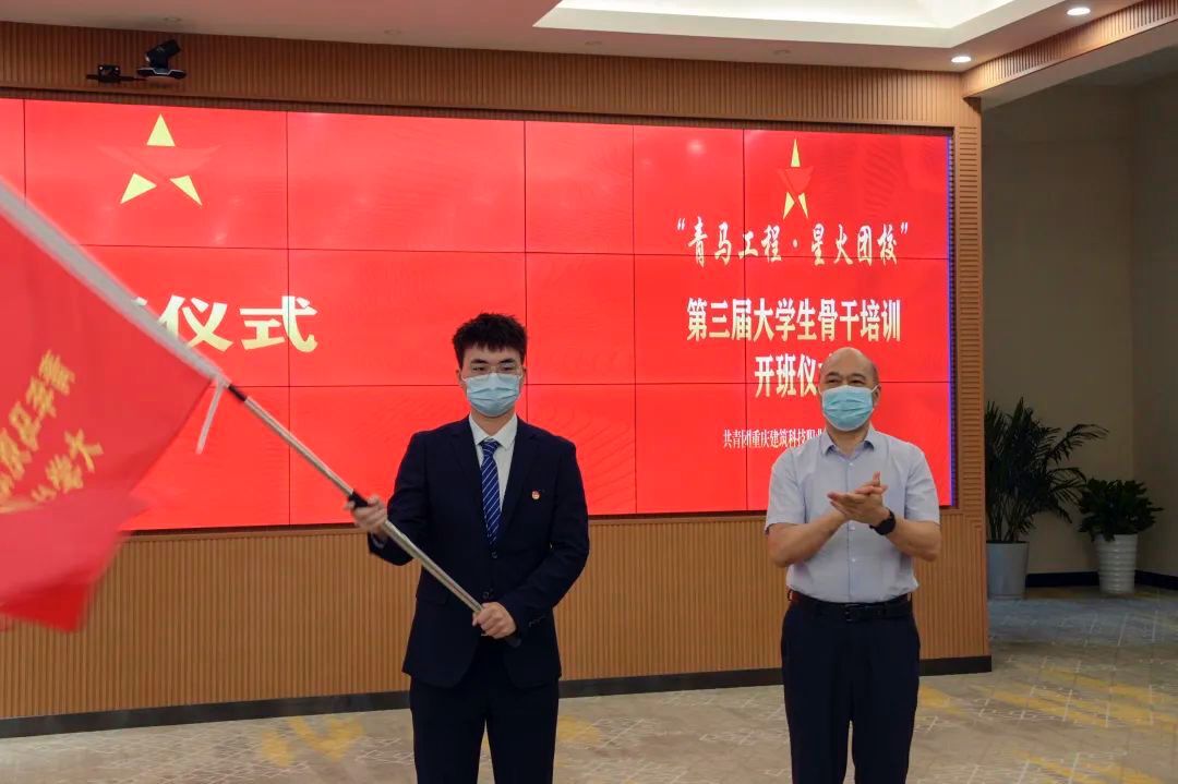 致辞后,文书记为第三届大学生骨干培训班学员代表授旗。