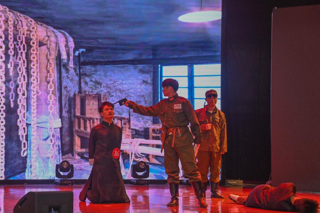 面对敌人的严刑拷打和威逼利诱,她始终坚守共产党员的信仰和底线,用生命捍卫了革命事业。重庆艺术工程职业学院同学们以《红岩精神,永放光芒》为题,精彩演绎和呈现了江姐及红岩先烈们的英雄气概和革命精神,把江姐这样一个难忘的名字,一段可歌可泣的英勇故事,一部民族解放的英雄史诗展现给了现场的师生。