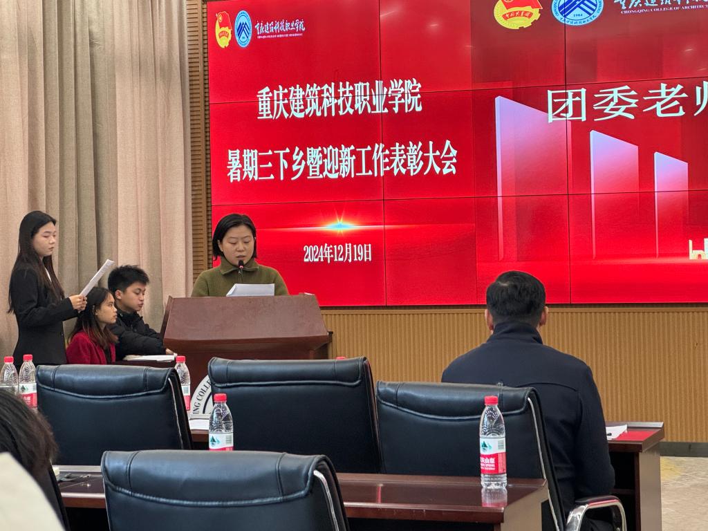 2024年12月19日下午14:00,beat365官方网站的“2024年暑期三下乡、迎新工作表彰大会”在大数据中心顺利召开。团委书记、各二级学院党总支书记(副书记)、团总支书记以及三下乡指导老师代表和学生代表均出席了本次会议。