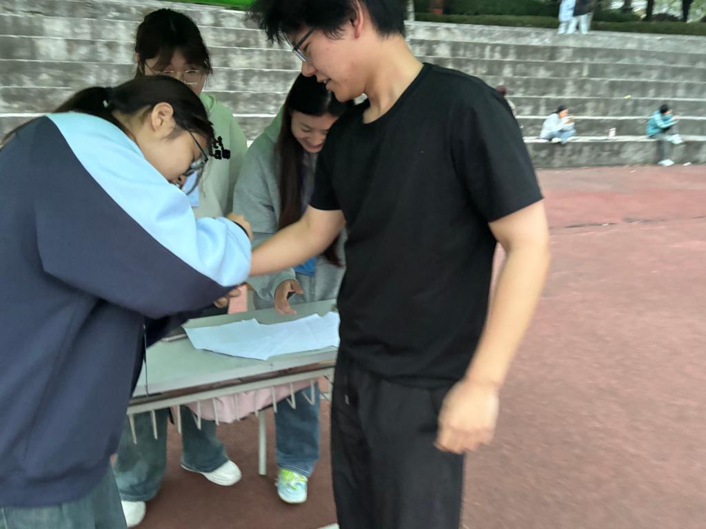 途中设置的打卡点更是趣味十足。在“你画我猜”打卡点,同学们两人一组,默契配合,欢声笑语不断。参与者们用生动的肢体语言比划着各种词语,猜对题目就能获得荧光棒,现场气氛十分热烈。“趣味问答”打卡点则考验着大家的运动知识储备。关于运动小知识的题目,让同学们在娱乐的同时,也学到了不少有用的知识。答对三题就能拿到一个印章,不少同学都跃跃欲试,认真思考作答。来到“团队合影”打卡点,大家纷纷发挥创意,摆出各种有趣的姿势。大家相互协作、相互鼓励,在镜头前留下了一张张充满青春活力的照片。集齐9个印章还能兑换奖状,这更是激发了同学们的参与热情。