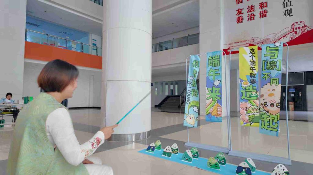 活动现场分为竞技比赛、文化体验和游戏挑战三大区域。竞技区“同舟共济”“气贯长虹”等团队游戏点燃了师生们的热情;文化体验区提供包粽子、制香囊等传统项目,参与者亲手制作节日礼物;游戏挑战区“粽钓江湖”“五毒退散”等创意游戏更是笑声不断。动漫社、茶艺社等学生社团也积极参与,为活动增添了青春活力。