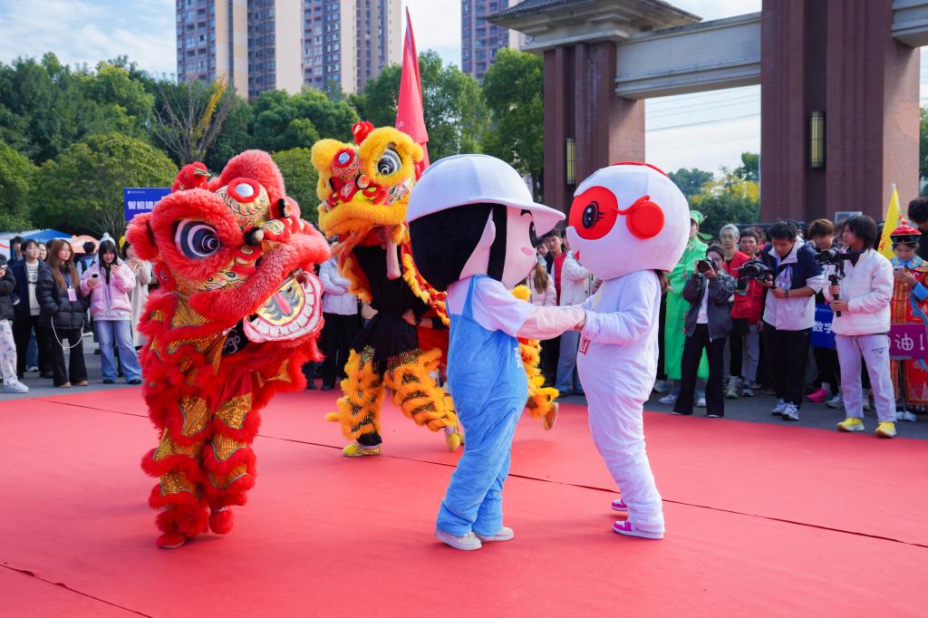 “本来只是陪室友来跑,看到西游和舞狮互动,我直接冲上去加入了!” 大二陈洁同学说,她临时借了件“小妖”服装,跟着 “师徒四人”和舞狮跑完全程,“这哪是跑步,明明是一场校园版‘西游记+民俗秀’!”