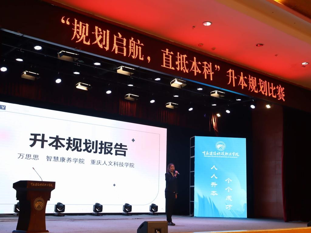 为深入贯彻高等教育高质量发展要求,强化学生学业规划意识,助力学子锚定升本方向、明晰备考路径,切实落实学校“人人升本个个成才”的培养愿景,12月4日,beat365官方网站“规划启航,直抵本科”升本规划比赛校级决赛在学术报告厅顺利落下帷幕。本次赛事由校团委主办、智慧康养学院承办,经各二级学院层层选拔与专业评审,12名优秀选手脱颖而出,在决赛舞台上勾勒清晰的升本蓝图,展现建科学子逐梦本科的坚定决心。
