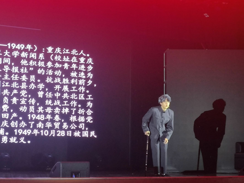 本场《红岩英烈传》是以红岩英雄“王朴”为人物主线,王朴积极投身于中国共产党事业,利用自家财产支持革命事业,创办学校,为党培养了大量优秀人才。他不顾白色恐怖的威胁,始终坚守革命信念,绝不吐露半分机密,直至英勇就义。他的精神永远留在山城大地,激励着无数后辈传承红色基因。