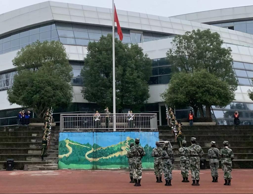 随着激昂的《义勇军进行曲》响起,升旗手振臂一挥,鲜艳的五星红旗迎着朝阳冉冉升起,全体师生行注目礼,齐唱国歌,现场气氛庄重肃穆。