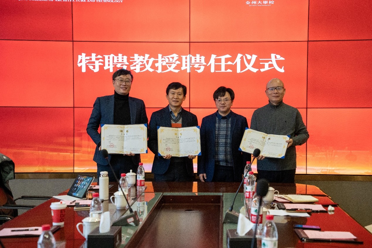 随后,会上举行特聘教授聘任仪式。副校长周俊华为高仙佑教授、金英修教授颁发了特聘教授证书,为晏凡森所长颁发了韩国事务部主任聘书。