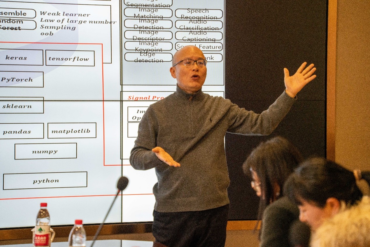 最后是高教授为大家做人工智能国际化师资培训。高教授详细介绍了全州大学人工智能专业的课程体系、人才培养方案等的建设思路,提出不同学部、学科的教授间应加强沟通和交流。同时,老师们应积极关注专业前沿的发展和变化,并主动学习新知识和技能,以便更好地引导学生,提高他们的学习成绩和综合素质。在场老师与高教授进行了交流互动,高教授毫无保留地进行经验分享。