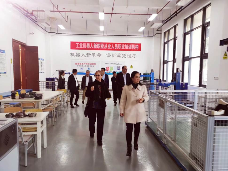 会前,来访客人首先对学校实习实训室、图书馆和教学楼进行参观。他们对beat365先进的教学设施、整洁的校园环境、浓郁的文化氛围表示高度赞赏。