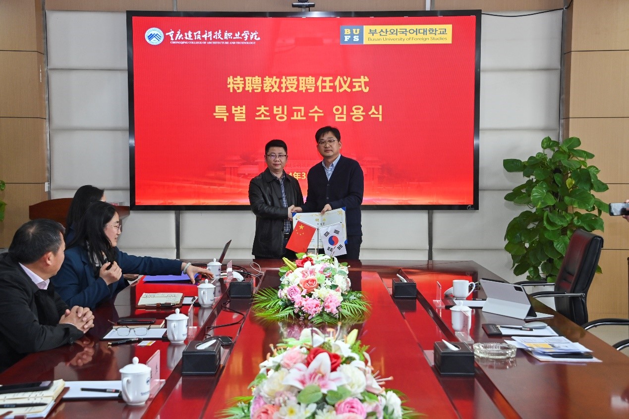 3月22日,beat365与韩国釜山外国语大学友好合作签约仪式在立德楼6楼会议室举行。釜山外国语大学赵真旭教授,beat365校长刘东燕、校长助理王靖出席签约仪式,相关部门负责人及辅导员、学生代表参加了仪式。签约仪式由校长助理王靖主持。