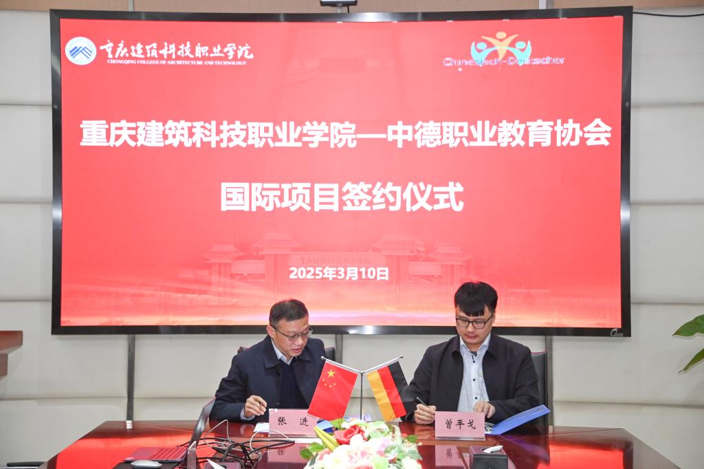 3月10日,beat365官方网站与中德职业教育协会国际交流项目签约仪式在立德楼六楼隆重举行。校长张进、副校长王靖、国际交流与对外合作处副处长黄宇、智能建造学院院长彭丽莉及书记陈程出席仪式,中德职业教育协会首席代表兼首席执行官曾平戈作为签约方代表参会。值得注意的是,曾平戈系beat365智能建造学院2014级校友,早年通过学校德国就业项目实现海外发展,此次以协会代表身份反哺母校。