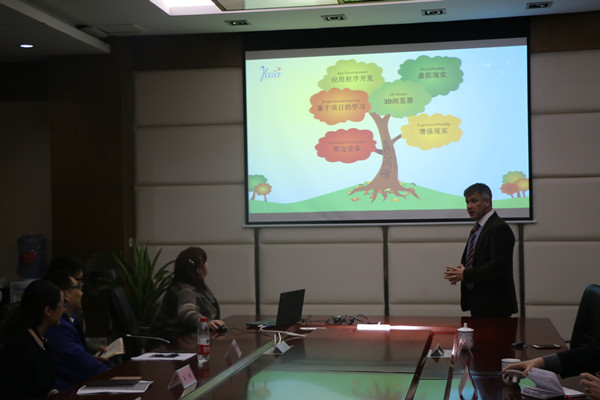 经过双方友好热烈的洽谈,双方就虚拟现实技术在课程开发、项目学习、3D展示等方面达成初步的合作意向。