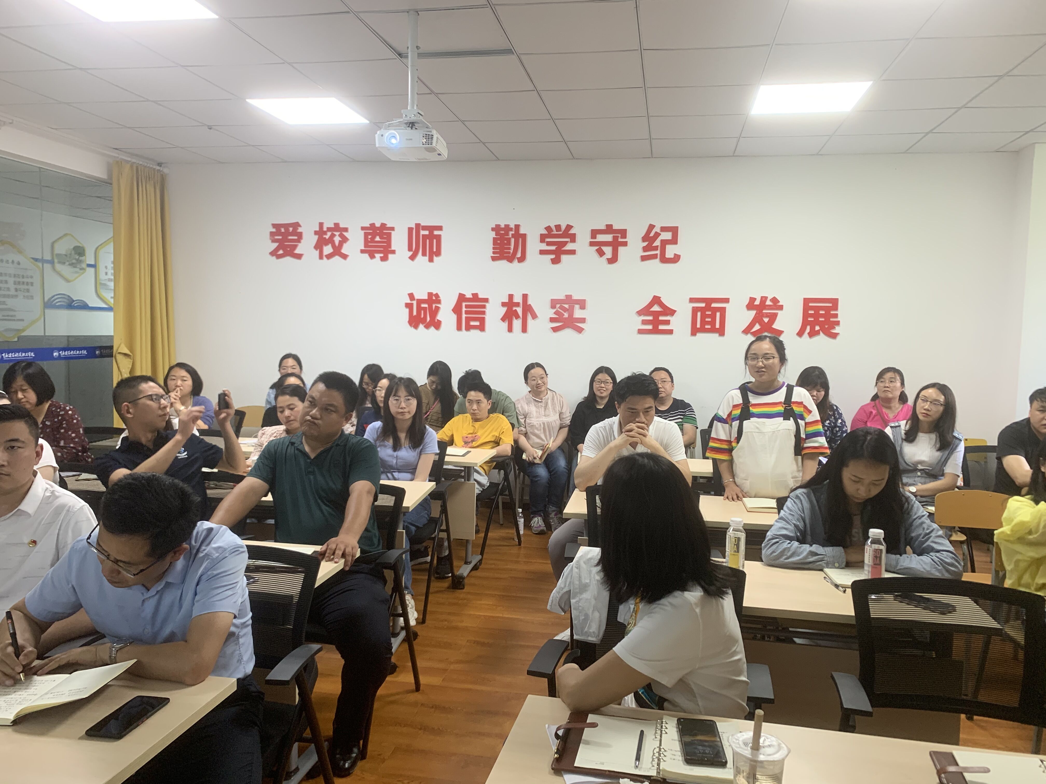 讲座最后钟琴老师谈到:辅导员有个承上启下的作用,在工作先把自己说服,与学生做到同频共振,共同进步。李爱菊老师谈到,我们要把学生当作自己的孩子来看待,用爱将之灌溉。在教育事业努力做好。冉小平部长提到教育工作者要做学生最好的榜样,多用情去感化、关怀学生但不能纵容学生,将同学们引上更好的道路。