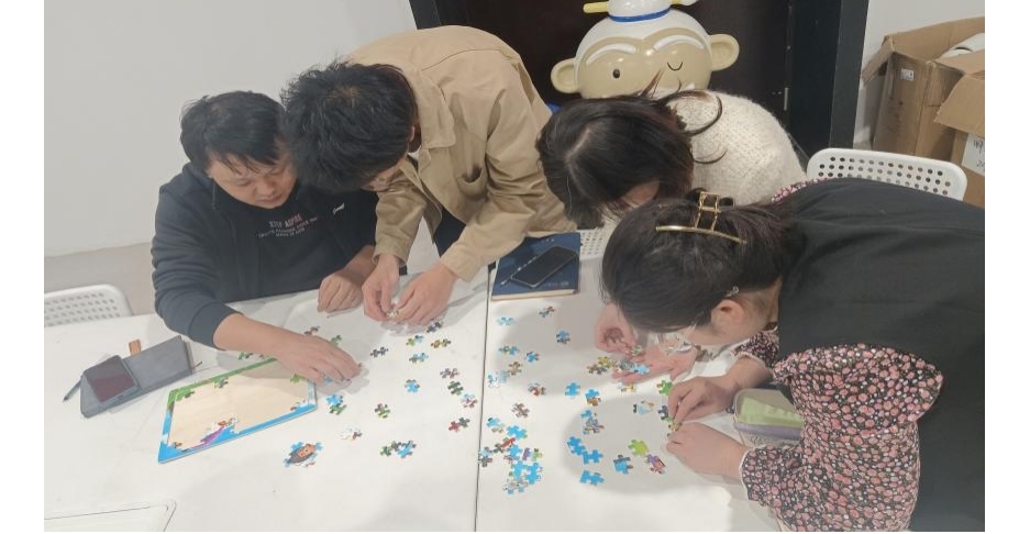 开始主持人以“拼图”游戏的方式让各位老师分组共同协作,在规定时间内完成拼图。老师们从最开始的迷茫到最后的共同协作,由慢到快的过程引出“群体效应”——当个体形式群体之后,通过群体对个体进行约束和指导,群体中个体之间的作用,使群体中的人在心理、行为上发生一系列的变化。