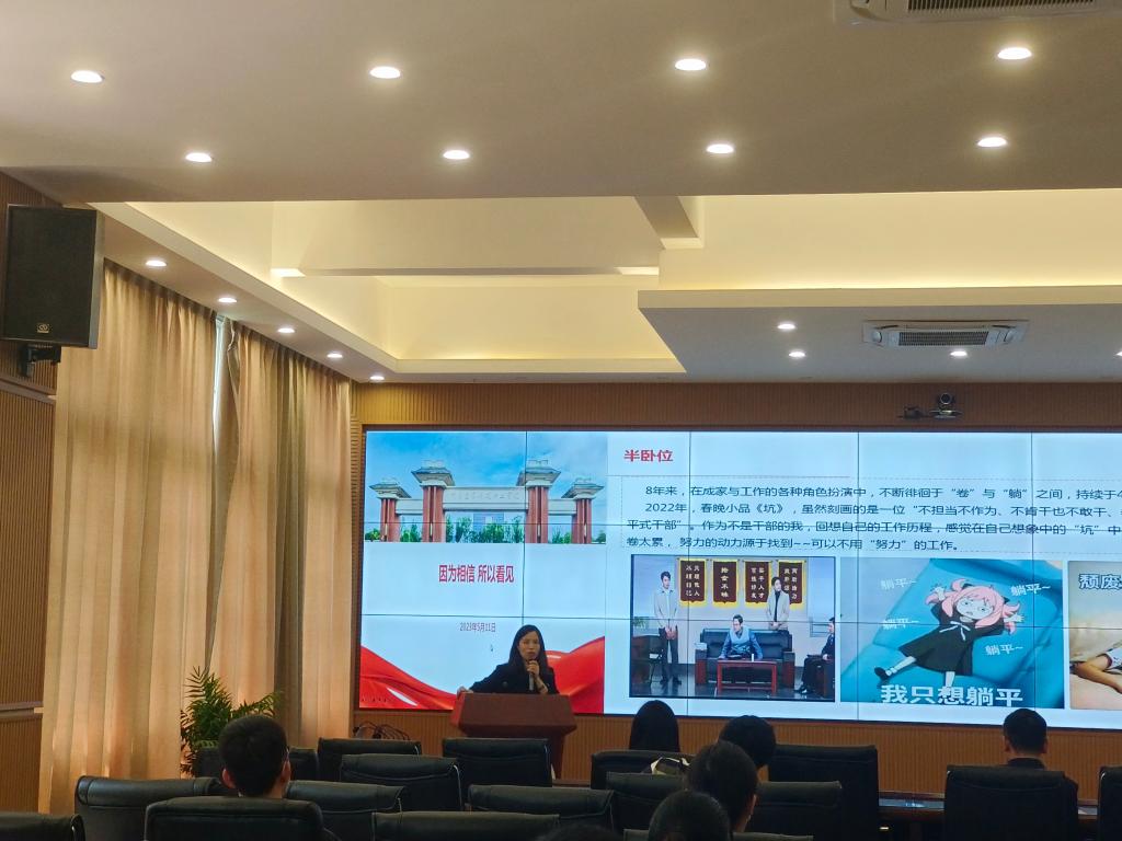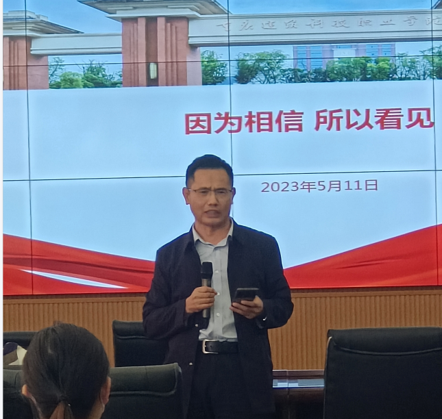 5月11日14:00,由学生工作部组织的“学工课堂”专题学习在大数据中心举行。商务职院专职组织员钟琴老师以“因为相信,所以看见”为题进行分享,学校副校长李果出席本次学习,各二级学院书记、专兼职辅导员、学工部成员共同参与。