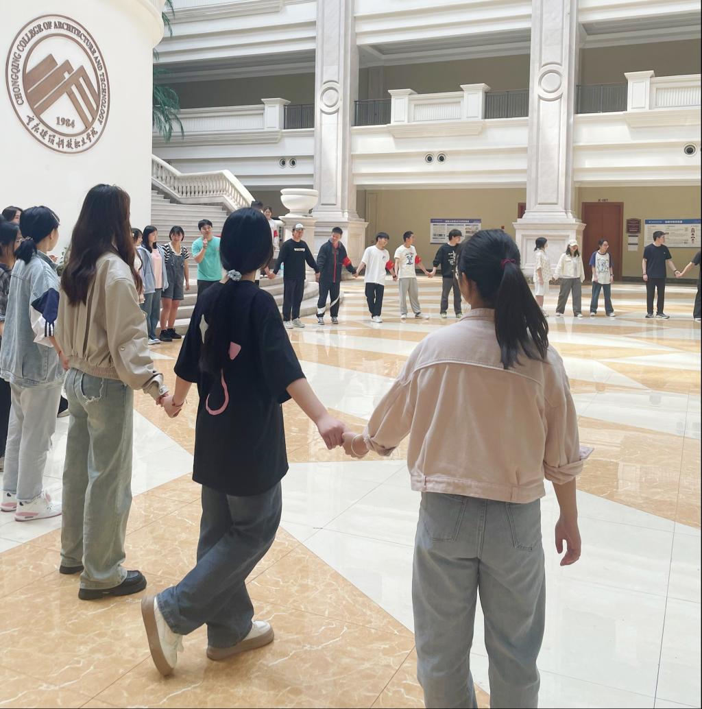 活动开始前,陈老师对活动进行了简要介绍,他希望同学们能暂时从紧张的学习生活中抽离出来,全身心的投入到当下的活动中。活动伊始,陈老师带领大家分了组,通过热身小游戏——桃花朵朵开。“桃花朵朵开”“开几朵?”“开5朵”……随着主持人喊出数字,每位同学迅速做出反应,在节奏与趣味十足的口令下,寻找自己的伙伴,结成“同盟”。随后陈老师带领着大家依次进行了“你比我猜”“心有千千结”“移花接木”“击鼓传花”四个极具趣味性与运动性于一体的游戏。现场气氛热闹活跃,同学们在欢声笑语中放松心情,在活动中展现青春风采。