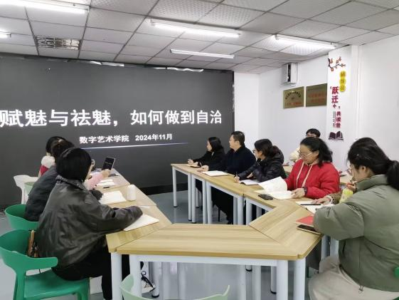 在高校教育的舞台上,辅导员这一角色宛如一颗璀璨而又复杂的星辰。他们时而被赋予神圣的光环,承载着众多期望,即所谓的“赋魅”;然而在实际工作中又面临着各种现实的解构,需要“祛魅”。如何在这看似矛盾的二者之间找到平衡、达到自洽,为解答这个问题,辅导员发展共读会第七十五期:“赋魅与祛魅,如何做到自洽?”于2024年11月18日晚上八点,在一站式服务中心举行。本次共读会由罗华玺老师主持,校长李果、值班书记殷源及辅导员共同参与。