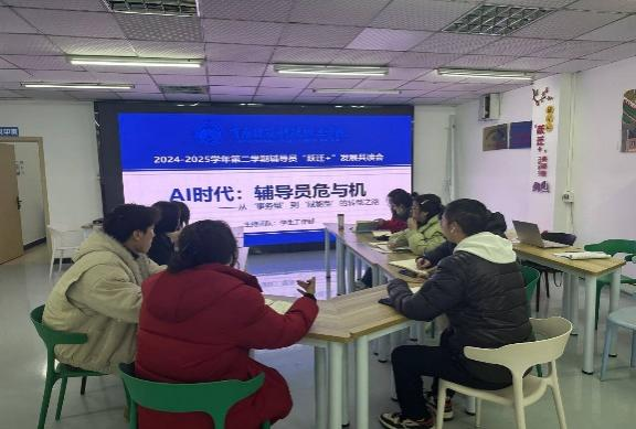 人工智能技术的飞速发展正深刻改变着各行各业,教育领域也不例外。面对AI带来的机遇与挑战,高校辅导员这一传统职业该如何应对?如何实现自我突破,在时代浪潮中站稳脚跟?为拓展辅导员的工作方式,辅导员发展共读会第八十三期: “AI时代背景下高校辅导员的职业危机与自我突破”于2025年2月25日星期二晚上八点,在一站式服务中心举行。本次共读会由学工部周玟瑾副处长主持,值班书记殷源及辅导员共同参与。