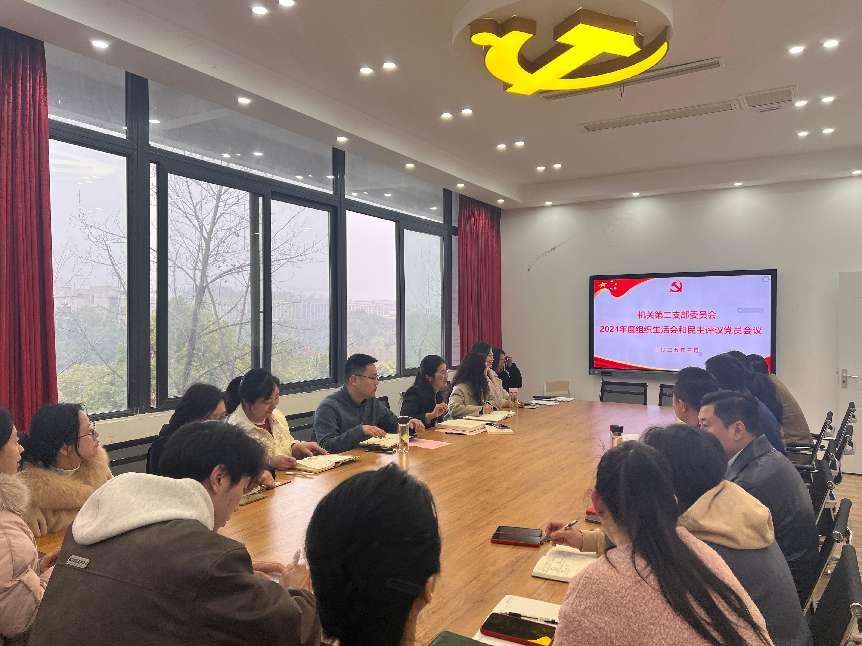首先,机关第二党支部书记冉小平同志就党支部2024年度支部工作情况做了简要汇报,她从政治建设、服务保障、重点任务等多方面详细汇报,并代表支部班子对照检查发言,她表示:“在上学年的支部工作中,过于关注重点,导致对日常工作实际程度关心不够,今后将从细节入手加强统筹指导;党建工作与业务工作有时过于冲突,应加强规范保持统一。”