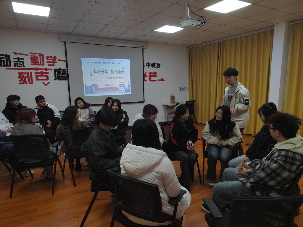 3月19日,学校心理中心在青年活动室为心理委员骨干开展了以“从心开始,拥抱春天”为主题的一站式学生社区筑梦文化活动。本次活动由心理中心张平平老师主持,全体心理委员骨干共20余人参加。