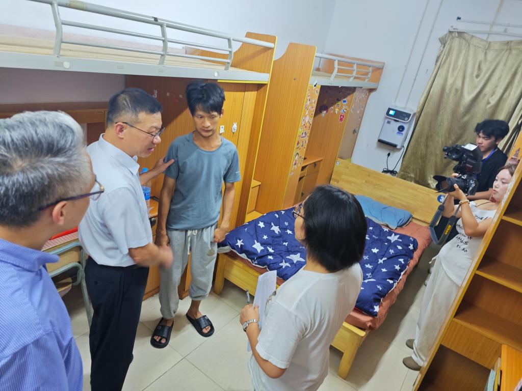 秋阳送暖,丹桂飘香。2025年9月2日晚,在2025级新生入学报到之际,为深入了解新生入学适应情况,传递学校关怀,张进校长、李朝国副校长带队深入新生宿舍,慰问刚刚入学的新同学,为他们送上殷切关怀和温暖问候。党政办公室、学生工作部、后勤保障部、各学院相关负责人及辅导员陪同走访。