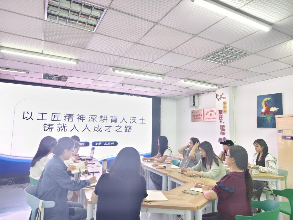 工匠精神是工匠对产品的精雕细琢,可我们这群“学生成长工程师”,又该如何以工匠精神深耕育人沃土,为每个学生铺就成才之路?为此辅导员“跃迁+”发展共读会于2025年9月29日晚八点在一站式中心举行。本次共读会由丛拯中老师主持,学工部副部长周玟瑾、值班书记殷源及各二级学院辅导员共同参与。