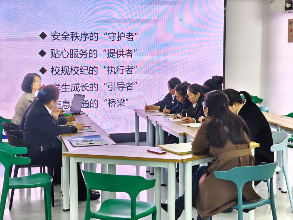 培训围绕四大核心模块展开,层层递进、重点突出。在 “角色认知”环节,明确了宿舍管理人员既是校园安全秩序的“守护者”、贴心服务的“提供者”,也是校规校纪的“执行者”、学生成长的“引导者”和信息沟通的“桥梁”,让参训人员对自身岗位价值有了更深刻的理解。