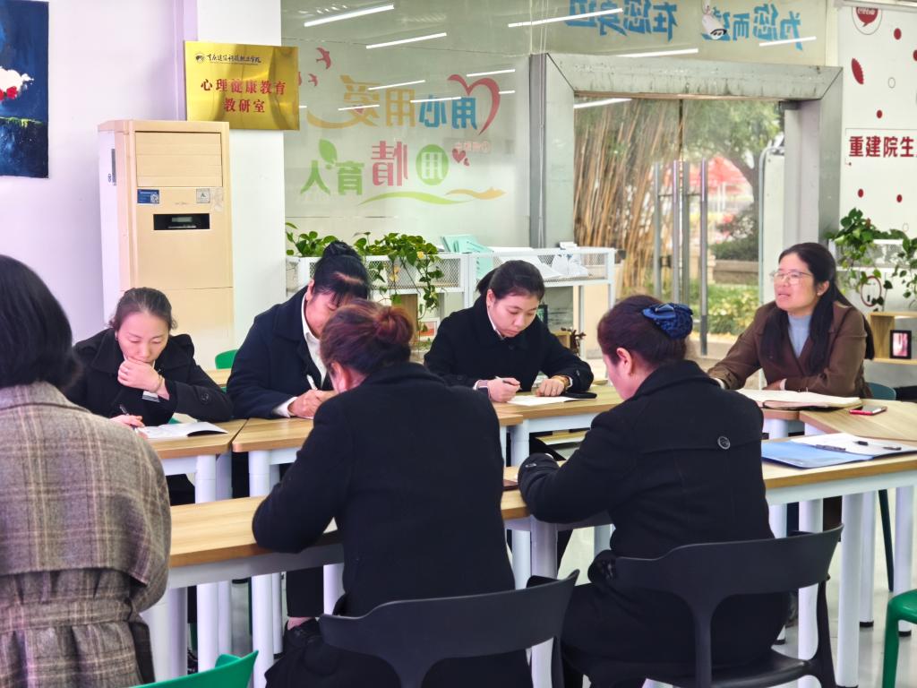 为进一步夯实宿舍管理工作基础,提升管理人员服务能力与应急处置水平,2025 年11月14日,beat365官方网站学生工作部在“一站式”学生社区服务中心开展“用心守护 用爱陪伴”专题交流培训课堂。本次培训由学工部部长冉小平担任主讲人,学工部教师张小艳、后勤主管汤坤及宿舍管理人员共同参与,围绕宿舍管理核心工作展开深度学习与交流。