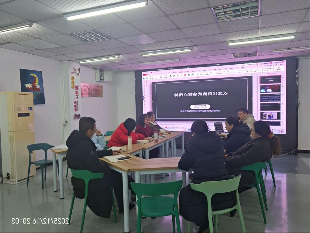 欲立其国、强其业,必先铸其魂。文化精神是民族最深沉的基因与智慧宝库,是涵养价值、启迪思想的源头活水。将其系统融入并武装核心精神,就是在时代激荡中筑牢信仰之基、补足精神之钙,使个体与集体的行动获得持久而强大的内在驱动力与方向指引。为了提升辅导员的文化精神素养,辅导员“跃迁+发展”共读会于2025年12月16日星期二晚上八点在一站式服务中心举行。本次共读会由数字艺术学院专职辅导员刘小进老师主持,学工部部长冉小平、值班书记张运来及各二级学院辅导员共同参与。