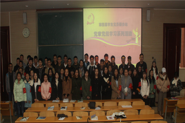首先,党员服务站指导老师唐妤向全体同学阐释了活动的目的及意义,并介绍本次活动分为三个阶段,第一阶段集中学习党章党规;第二阶段分散巩固学习,撰写心得体会;第三阶段学生代表分享交流学习心得。随后,开始了第一阶段集中学习,党员服务站宦翠婷、伍俊霖、刘桎同、李长泉同学作为代表向全体同学宣讲了《党员的义务与权利》、《党的纪律》、《党的组织制度》、《党的廉洁自律准则》等党章党规中的节选内容,全体同学认真聆听,专心学习,并积极做好知识笔记。唐妤老师表示,希望大家通过对党章党规的学习,深刻认识到自己身上的责任与义务,在以后的学习工作中,时刻检查自己、警醒自己,充分发挥好先进青年的先锋作用,做到不仅在思想上入党,而且在行动上入党,以党的条例及规章制度严格规范和约束个人行为。同时希望大家在第二阶段的分散学习中,认真观看专题教育片《与时俱进话党章》,深入了解党章的新变化、新特点,不仅提高理论认识高度,还需用自己的行动落实到每一项规定,努力把“两学一做”学习教育引向深入,为实现beat365十三五规划作出自已的贡献。
