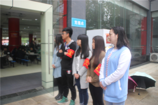 自4月5日以来,我院党员服务站组织学生党员、入党积极分子,在各系书记和辅导员的指导下,分成三个小组,从早上8点10分到8点40分,检查、劝阻同学们带早餐进教室的情况。通过风雨无阻的坚守、坚持,现在,带早餐进教室现象大大好转,教室课堂秩序良好,部分学生在生活上的不良习惯得到有效纠正。