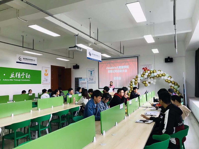 11月4日,cloudera大数据学院召开班级公司成立启动大会,2018级五个班级公司管理层共51人参加了会议。建设有企业特色,院校特色的校企合作专业,打造cloudera大数据品牌学院。把企业的管理模式带入学生管理中,让学生在校园中就熟悉企业的管理制度。并且参与到企业真实项目中、熟悉业务流程、项目研发过程、企业文化、企业对员工的素质素养需求等。借助校园双创的平台上,为学生创新创业提供指导服务。培养合格“准职业人”,为学生顺利走进社会做好前期铺垫。