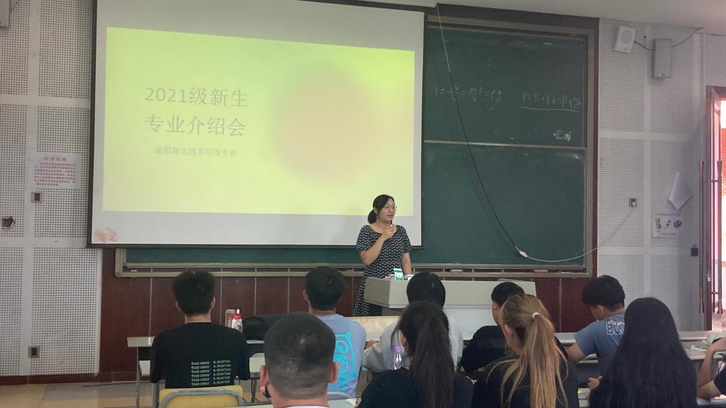 2021级新生在经历了两周的军训后,迎来了新学期开学的第三周,为帮助新生快速适应大学生活,加深对虚拟现实技术所学专业的了解,引导同学们更好的思考和规划大学生活,数字工程学院虚拟现实技术教研室于2021年9月23日13:00在笃学楼3405举行专业介绍会。