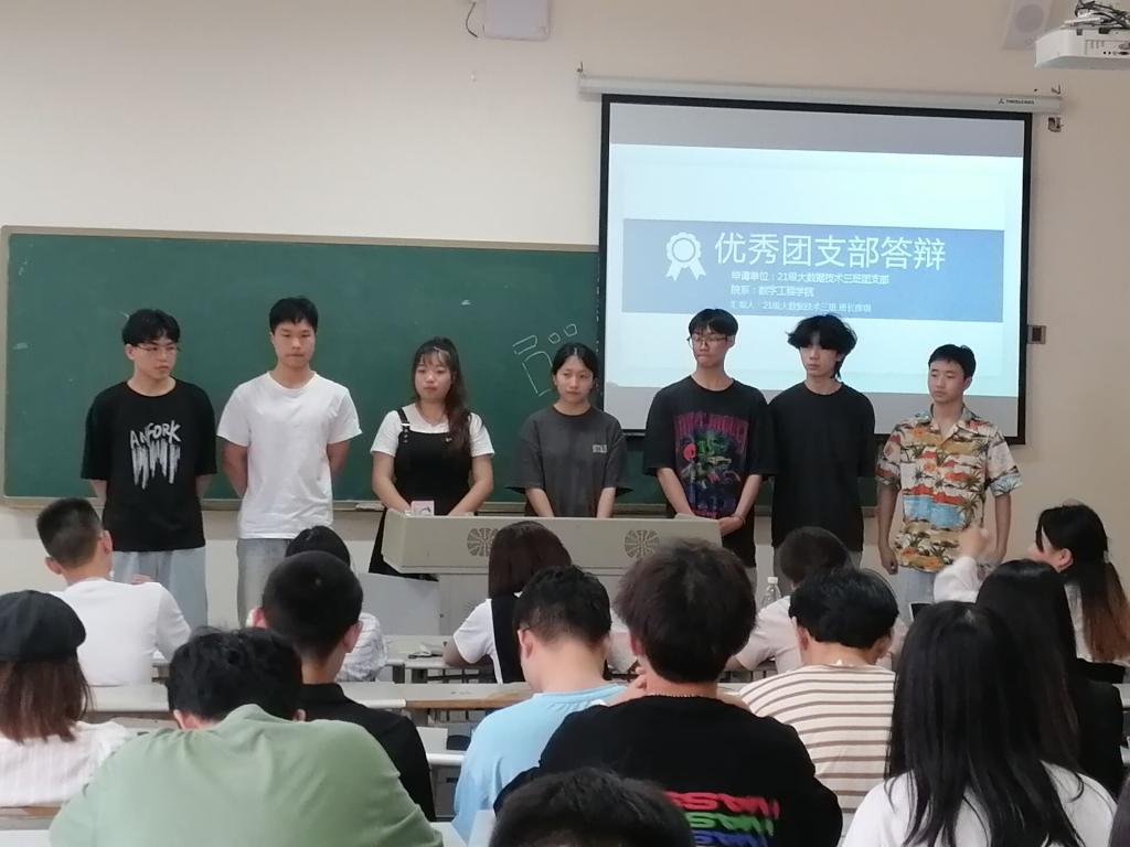 本次优秀团支部路演答辩的班级共有七个,他们通过团支部介绍和班委团队答疑的方式,分别对自己的团支部进行了精彩的展示。介绍主要围绕班级简介、班级建设、学风建设、党团建设、班级活动、班级荣誉、人才输送、未来展望等八个方面依次展开,通过小视频、图片、图表、数据分析等形式向我们展现了各个团支部团结、积极、向上的风采。评委老师们指出各班级团支部目前存在的问题,并根据同学们的回答,给出了宝贵的建议。