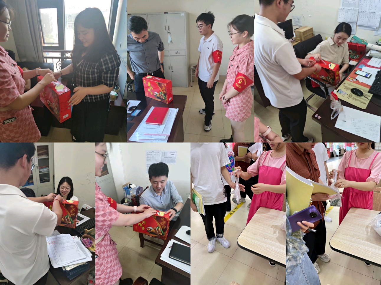 5月30日早上,班级为每位同学精心准备了端午礼物,并亲自送到每位同学的手里。随后,由班委作为代表给学院领导,辅导员送去了端午祝福。下午在班委的组织带领下,在食堂一起煮粽子,并与班上的每一位同学都分享了这份端午节的喜悦,同学们也互相祝福端午安康,现场充满了欢声笑语。