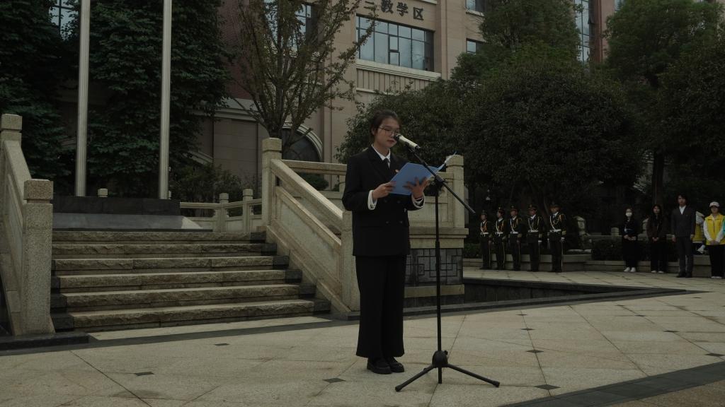 礼毕,由21级物联网专贯本2班学生代表张杏越发表了国旗下的演讲——“贯彻党的二十大,争做时代好青年”,期间她表达了对祖国的热爱与祝福,以及在大学中要求真务实。随后,21级计算机网络技术2班的同学带来合唱歌曲《歌唱祖国》,“五星红旗迎风飘扬,胜利的歌声多么响亮,歌唱我们亲爱的祖国,从今走向繁荣富强”这高无亢昂的旋律萦绕在我们耳畔,同学们的歌唱也迎来了阵阵掌声!伴着动听的歌声、响亮的掌声,升旗仪式接近了尾声。