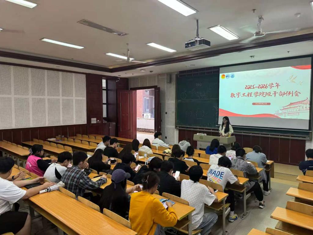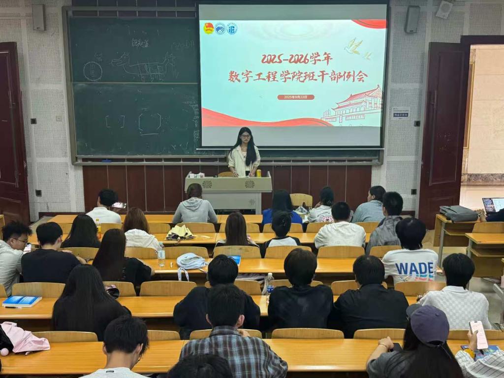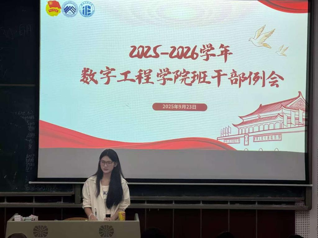 2025年9月23日,数字工程学院2025-2026学年班干部例会在笃学楼2305教室召开,团组织·学生会副书记唐浈霁(候选人)主持会议,全体班级干部参会。