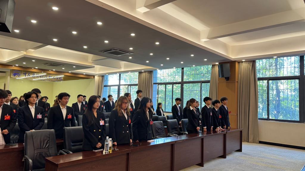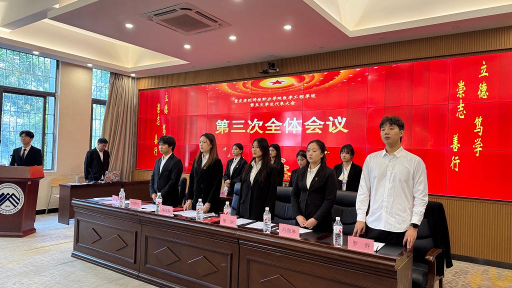 当日,各代表团成员身着正装,以庄重饱满的状态参会,围绕学院发展、教学优化、学生权益保障等核心议题,带着对校园建设的思考与建议,准备为学院与学生的共同进步贡献青春智慧。在激昂旋律中,全体代表起立奏唱国歌,大会正式拉开帷幕。
